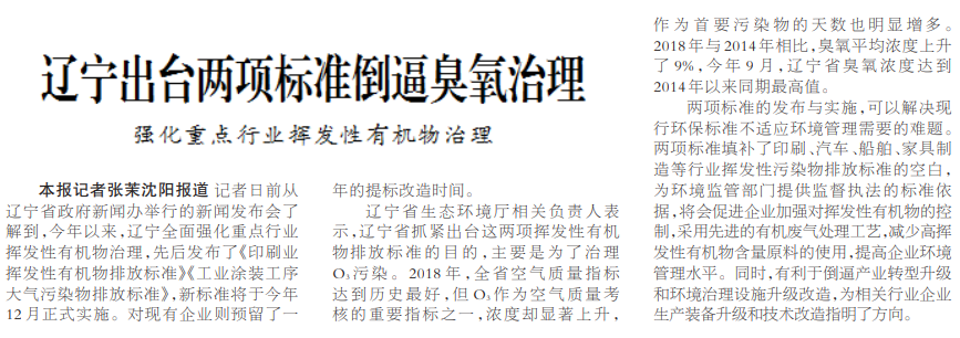 遼寧出臺兩項標(biāo)準(zhǔn)倒逼臭氧治理