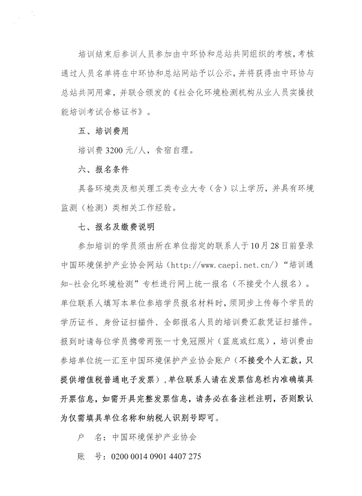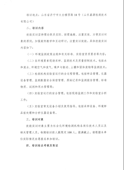 關(guān)于舉辦2019年度第十期社會(huì)化環(huán)境檢測(cè)機(jī)構(gòu)從業(yè)人員基本實(shí)操技能培訓(xùn)班的通知