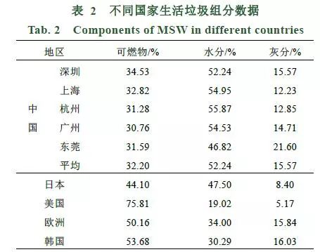 2)從焚燒角度將生活垃圾分為可燃物、水分和灰分3類。表2為不同國家垃圾焚燒廠焚燒的垃圾組分?jǐn)?shù)據(jù)。