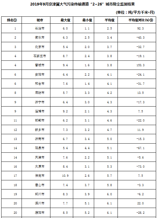 生態(tài)環(huán)境部公布9月京津冀大氣污染傳輸通道“2+26”城市和汾渭平原11城市降塵監(jiān)測(cè)結(jié)果