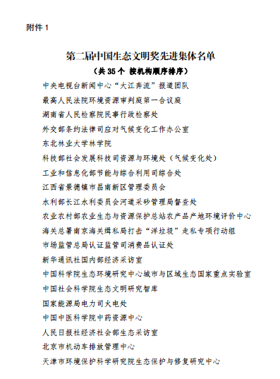 附件:1.第二屆中國(guó)生態(tài)文明獎(jiǎng)先進(jìn)集體名單