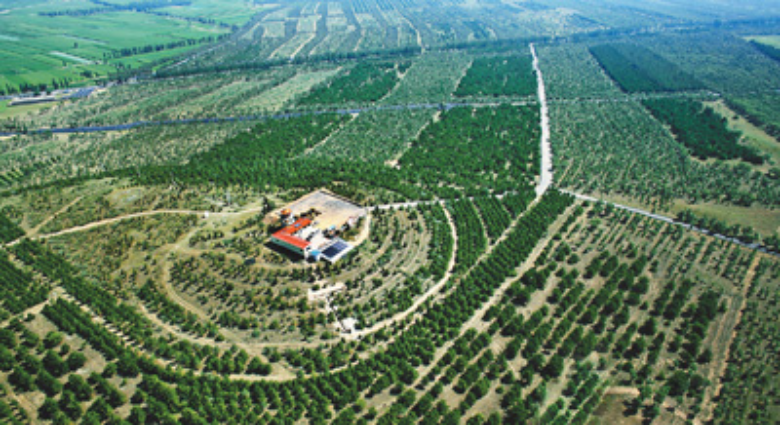 修路、打井,推沙包、拉滴灌。先種耐旱的紅柳、胡楊、梭梭,然后外圍種速生的楊樹,再種紅棗、核桃、管花肉蓯蓉、花椒等經(jīng)濟(jì)作物。幾年過去,沙丘綠起來了,風(fēng)沙小了。紅棗、花椒等賣了錢,農(nóng)民收入也多了。