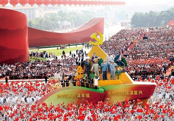 2019年10月1日上午,慶祝中華人民共和國成立70周年大會在北京天安門廣場隆重舉行。這是群眾游行中的“不忘初心”方陣。
