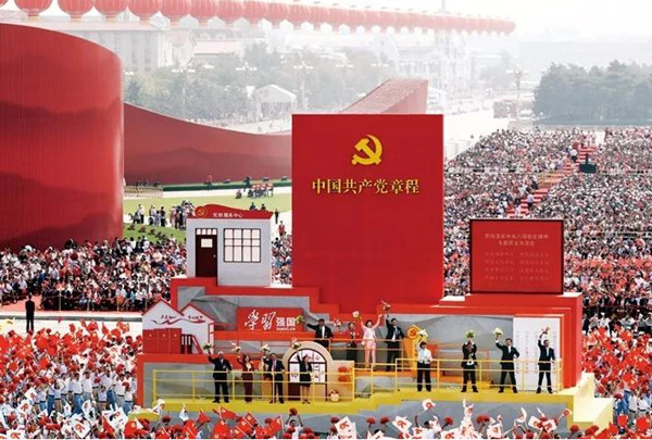 2019年10月1日上午,慶祝中華人民共和國成立70周年大會在北京天安門廣場隆重舉行。這是群眾游行中的“從嚴(yán)治黨”方陣。